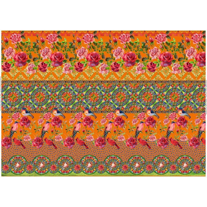 Stenzo tricotstof rozen met vogel - oranje 50 cm