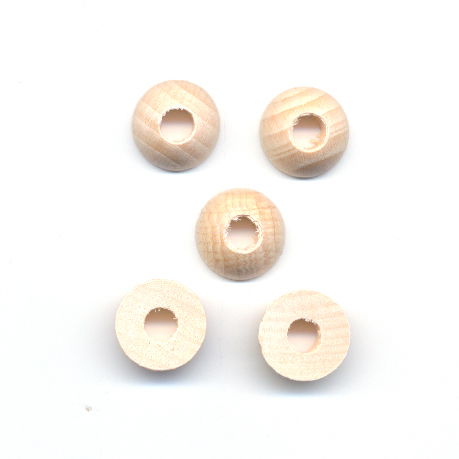 Ronde steunvoetjes van hout, de doorsnee is 15 mm, de gaatjes 6 mm.