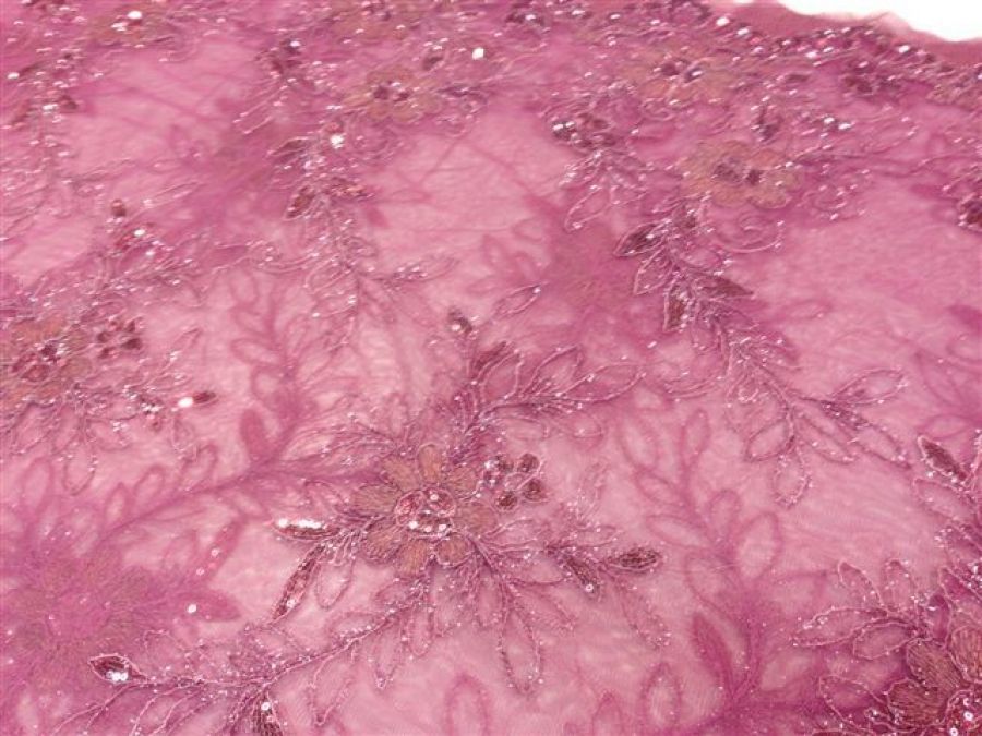 Tule de luxe 22 met bloemen en kraaltjes roze per 25 cm