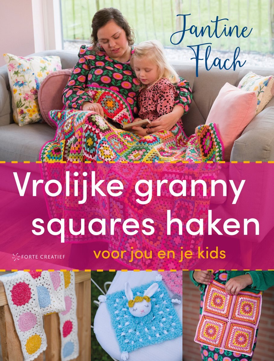 In het boek vrolijke granny squares haken voor jou en je kinderen, kleurrijke retro haakpatronen. Haak een tasje, deken, knuffellap, haarband, etui en meer. Grote en kleine haakprojecten ontworpen door Jantine Flach.