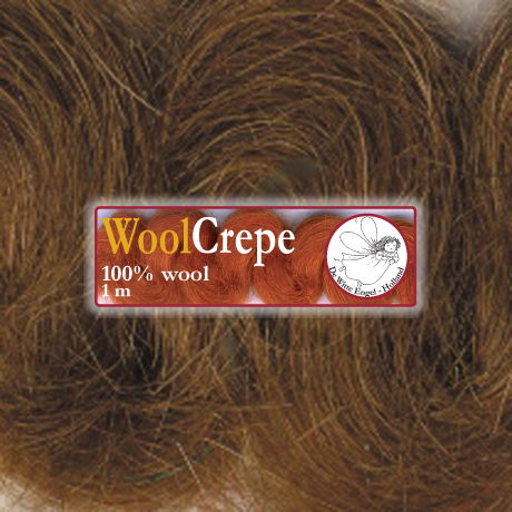 Woolcrepe is een dunne vlecht wol die als je ze uit elkaar trekt een krullend effect geeft. Deze wol is zeer geschikt voor het maken van poppenpruikjes en baardjes, snorren en pruiken voor toneel.